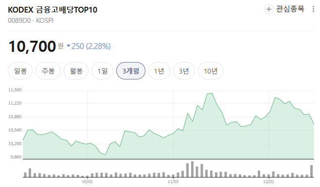 또한 코스피 지수가 상승하면서 금융 고배당주에 투자하는 다른 ETF가 상승하고 있지만, KODEX 금융고배당TOP10 ETF와 KODEX 금융고배당TOP10타겟위클리커버드콜 ETF는 각각 2% 안팎 하락하게 되었습니다.