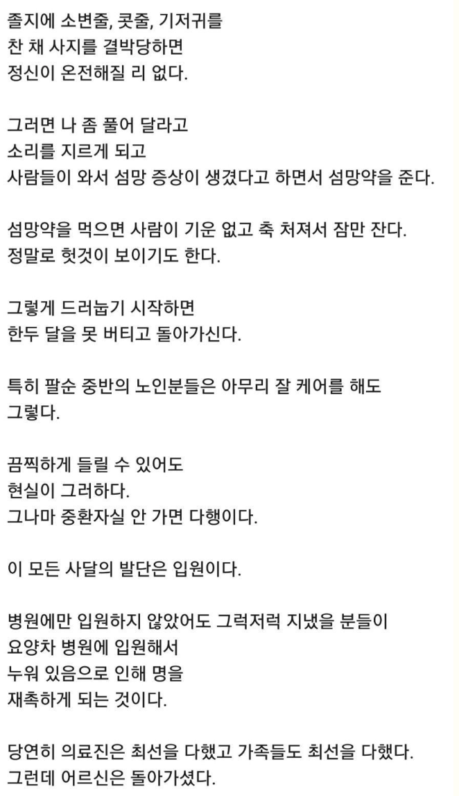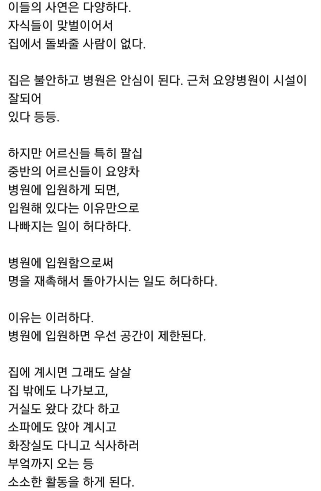 | 어르신들을 요양병원에 보내면 안되는 이유 (0) | 2025.12.30 |