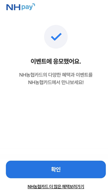 그리고 그다음 11월에 NH Pay를 포함하여 5만원 사용시 4만원 캐시백 해준다고 합니다.