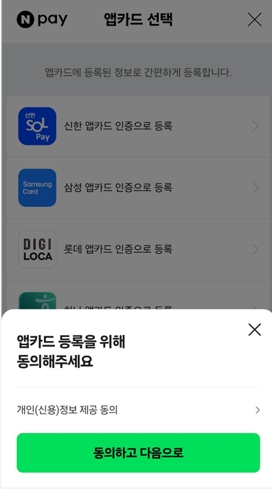 이 때 네이버페이 - 삼성페이로 등록을하면 오프라인에서도 간편결제로 사용이 가능한데요.