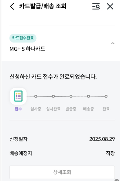 발급 이후에는 하나카드 앱에서 상태 확인되구요.
