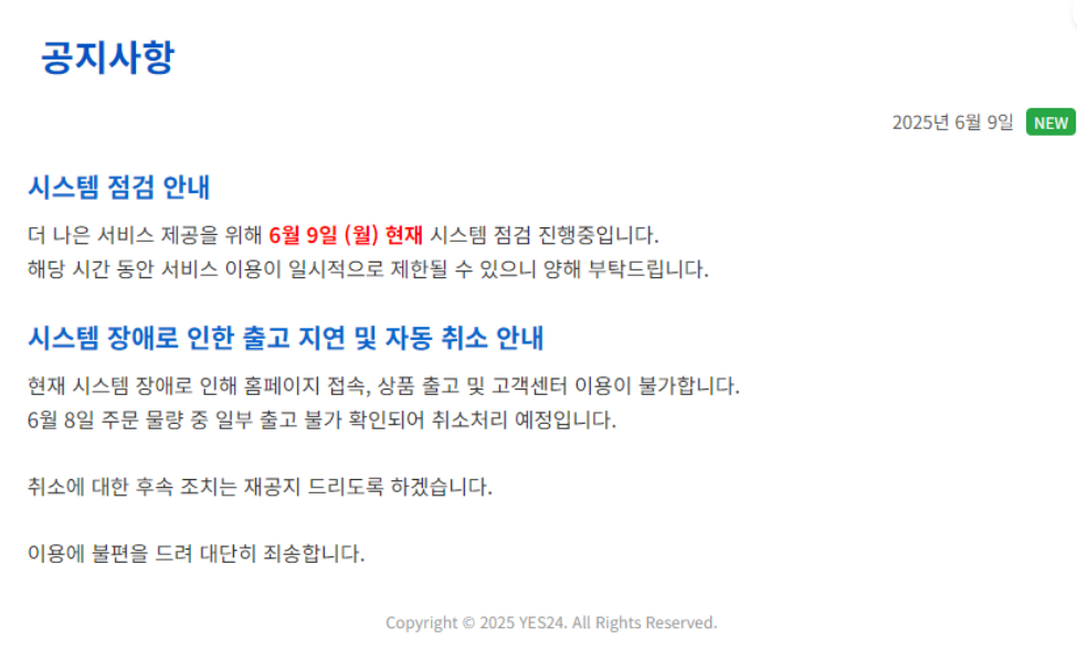 yes24는 지난 6월 9일부터 랜섬웨어에 해킹을 당했다고 합니다.