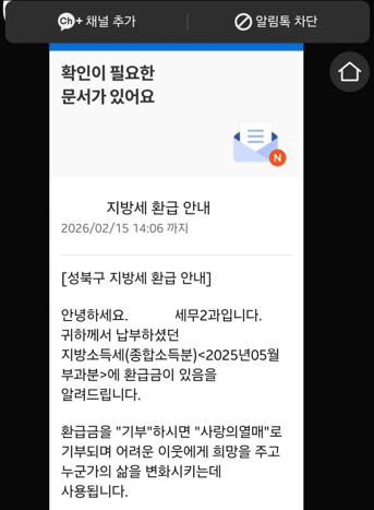 환급을 받을건지 기부를 신청할 건지 선택할 수 있구요.