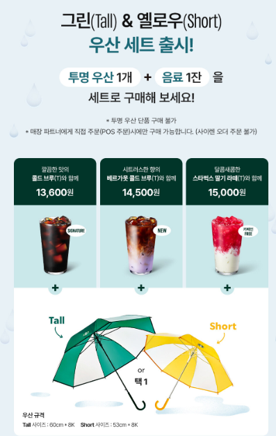 스타벅스에서 7월까지 9일마다 투명우산을 파는 이벤트를 진행하고 있습니다.