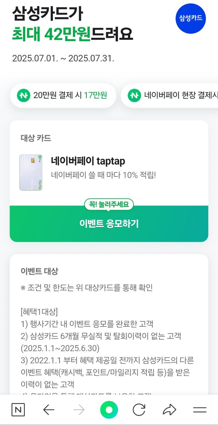 삼성과 신한의 경우 아래와 같이 22년 이후에 혜택을 받았으면 받을 수 없습니다 ㅠ